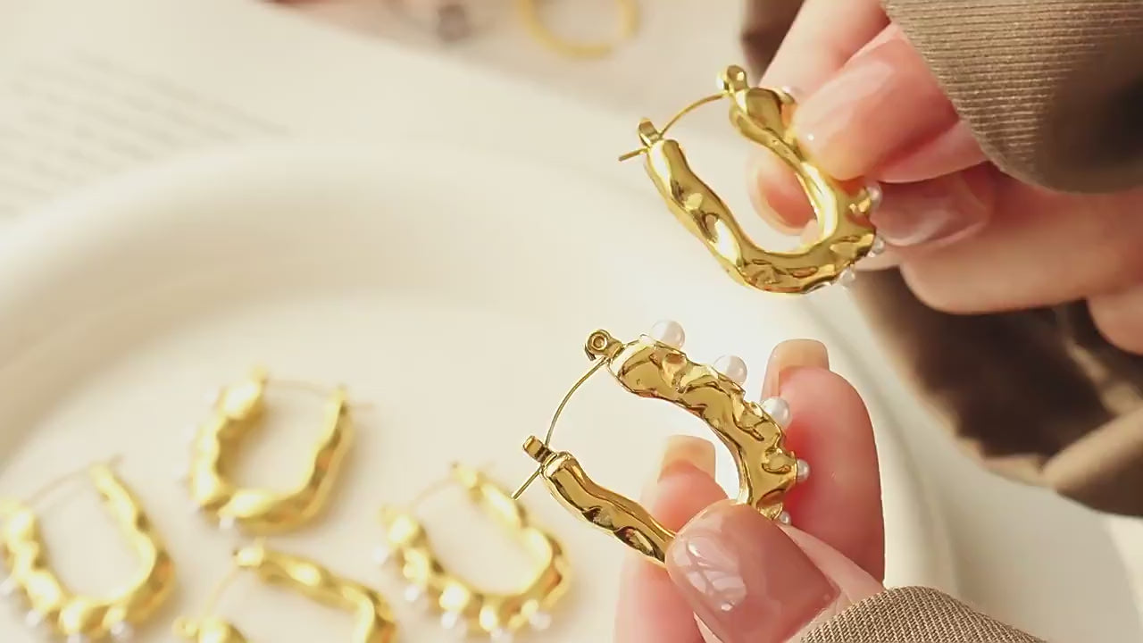 Minimal, but make it luxe. These hoops bring soft glam with a fresh twist—think gold or silver paired with delicate freshwater pearls. Light as air, bold in energy. Your new go-to for coffee runs and candlelit plans.