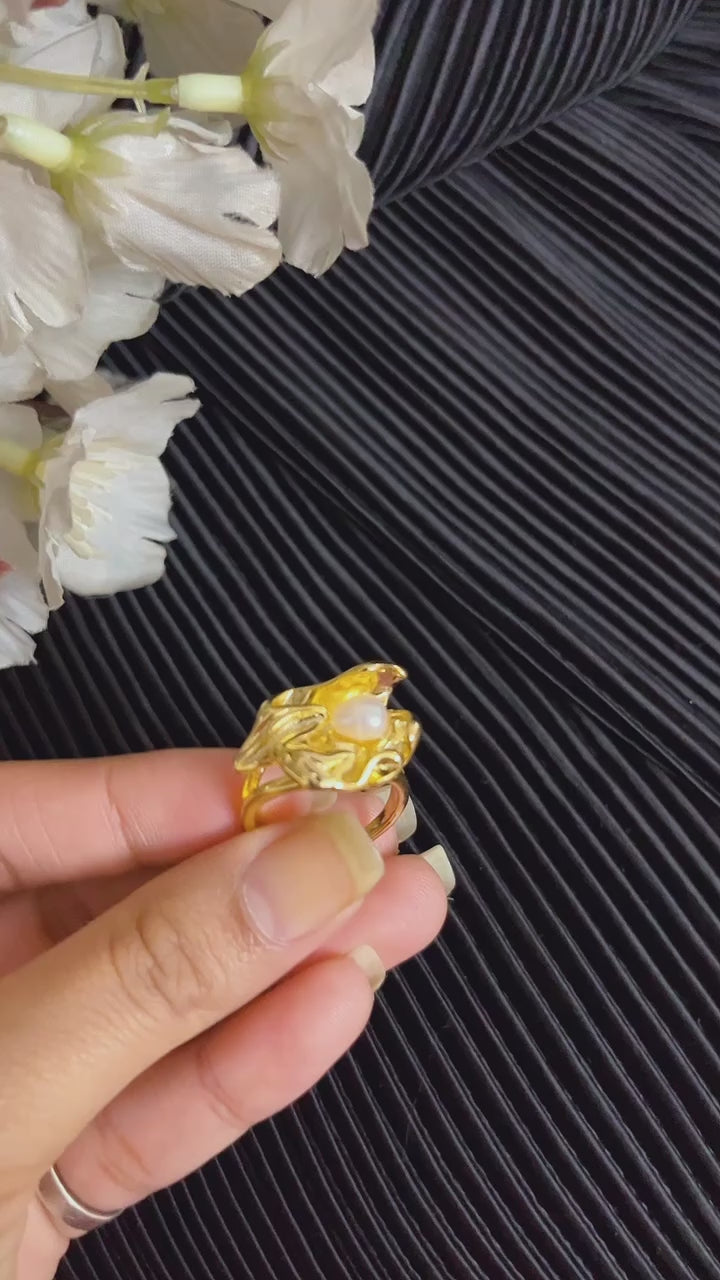With a beautifully textured Ring and a central pearl, this ring adds elegant twist to your look. The intricate texture pairs perfectly with the pearl, offering a sophisticated yet modern style.